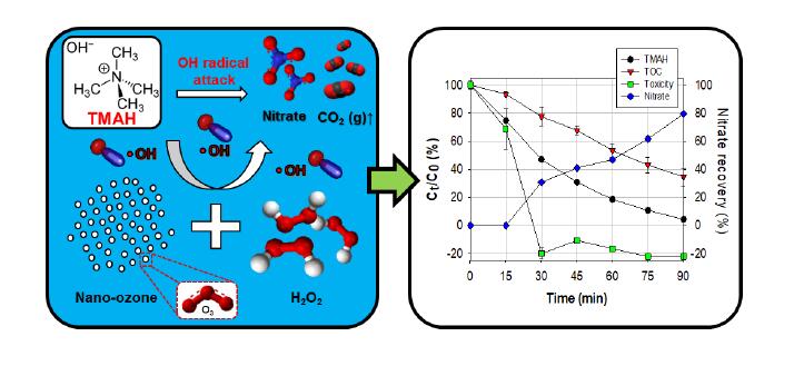 納米臭氧/ H2O2工藝在pH 10和25°C下對TMAH的去除效果好。