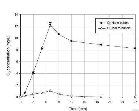 使用納米臭氧時(shí),氣體傳質(zhì)和臭氧氣體的半衰期增加了