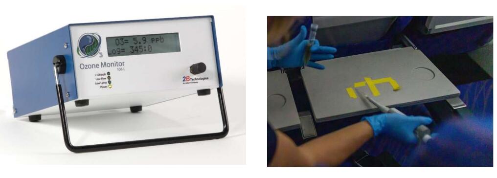 2B Tech 儀器的作用:106-L 型在整個(gè)飛機(jī)消毒過程中監(jiān)測臭氧濃度。